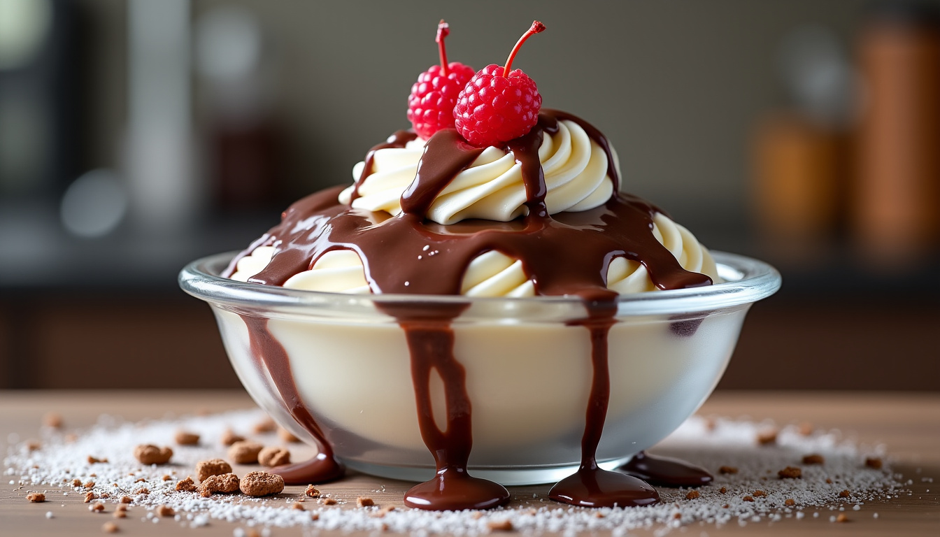 La crème chantilly, quant à elle, ajoute une légèreté aérienne et une touche de gourmandise inégalée. Elle peut être maison ou en bombe, mais doit toujours être généreusement déposée pour un effet visuel immédiat. Enfin, les garnitures croquantes – noix, pépites, biscuits écrasés – apportent du relief et de la texture, tandis que la cerise au marasquin, symbole incontournable, offre une touche de couleur et une note acidulée.